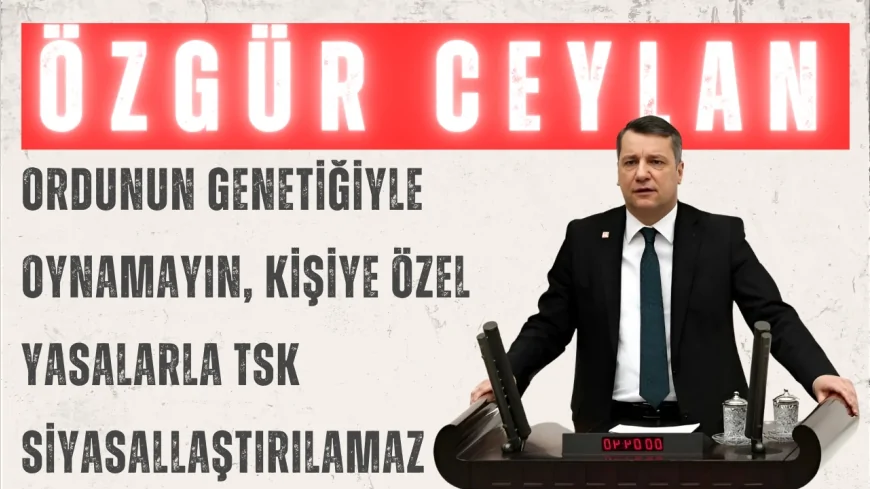 CHP Çanakkale Milletvekili Özgür Ceylan, 217 sıra sayılı torba kanun teklifinin birinci bölümü üzerine CHP Grubu adına yaptığı konuşmada, özellikle Millî Savunma Bakanlığına ilişkin maddeleri ele aldı. Ceylan, düzenlemelerin Meclis komisyonlarında usulüne uygun tartışılmadan geçirildiğini, teklifin özünde ordunun kurumsal yapısına zarar verdiğini savundu.